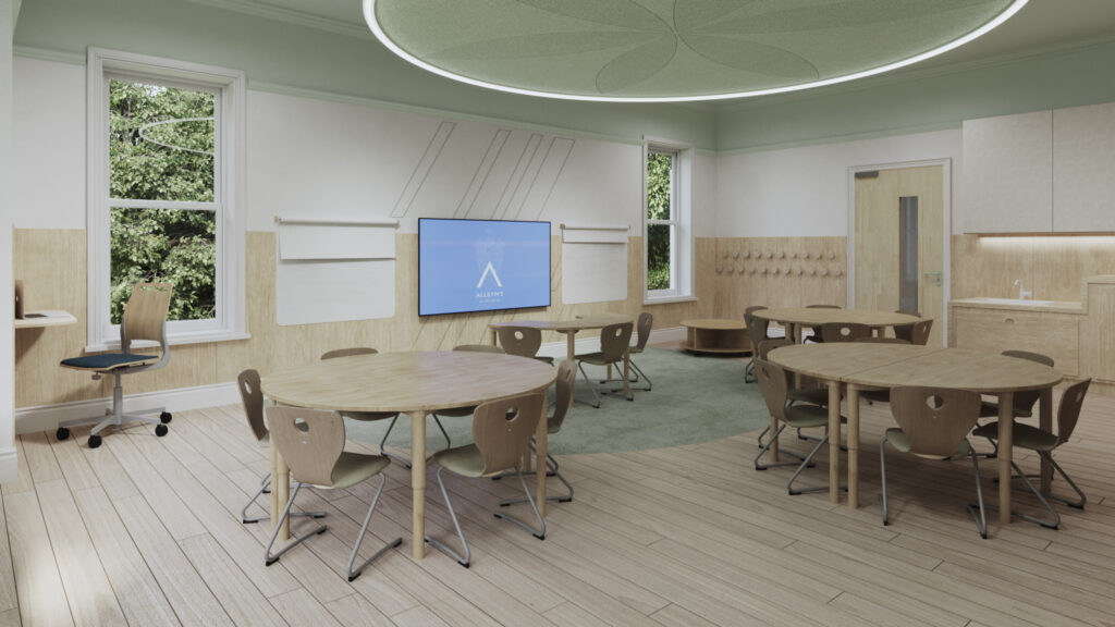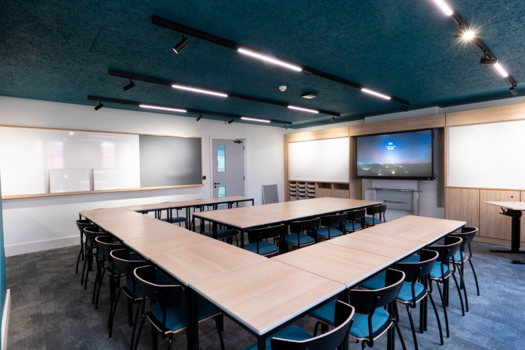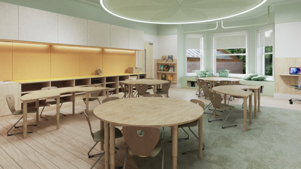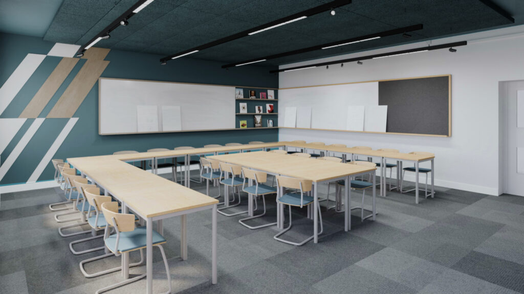 This summer refurbishment project for Alleyn’s School transformed five teaching spaces into a prototype for establishing the school’s ideal learning environment. Whilst the project involved bringing the Alleyn’s brand to life through interior design, the deeper work focused on achieving acoustic and lighting standards that significantly exceed current government requirements – creating spaces that genuinely enhance how children learn.