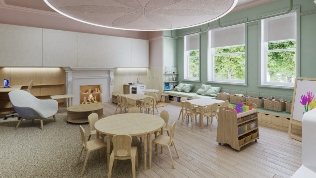 We also applied the same thinking to the early years and primary classrooms, adapting the environmental design strategy appropriately. The early years spaces embrace best practice with nature as a stakeholder, using natural materials and soft, muted, calm tones.