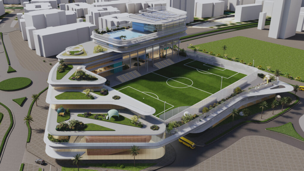 This project explores how high-rise schools can work effectively in Dubai’s urban context, prioritising vertical circulation efficiency and outdoor access for different age groups.
